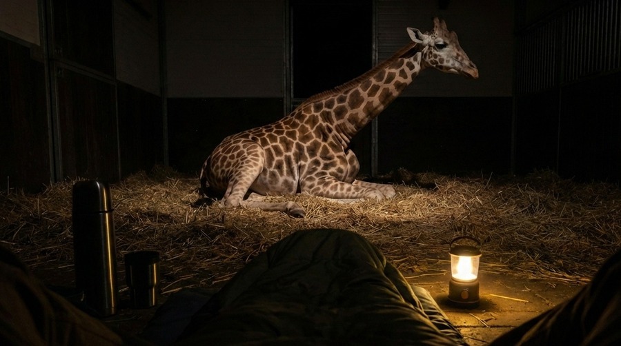 いよいよ出産予定日が近づきました。マイクは毎晩、動物園に泊まり込みます。ベラのそばで寝袋に入り、様子を見守りました。少しの変化も見逃さないよう、神経を研ぎ澄まします。ジェシカも交代で付き添いました。二人は交代で仮眠を取りながら、24時間体制でベラを見守ります。そして、運命の夜が訪れました。午後11時30分、ベラの様子が急変しました。陣痛が始まったのです。マイクはすぐに獣医に連絡しました。しかし、獣医は別の緊急手術中でした。電話に出たのは園長でした。「すぐに向かう。君たちなら大丈夫だ」