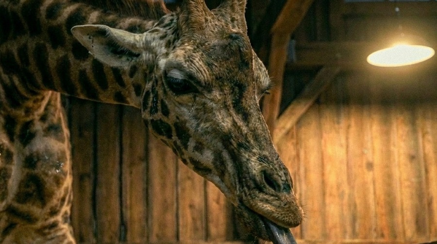 地面に落ちた赤ちゃんは、最初ピクリとも動きませんでした。マイクは不安で胸がいっぱいになります。しかし数秒後、小さな鳴き声が聞こえました。生きています。ベラが振り返り、我が子に近づきます。そして舌で、赤ちゃんの体を舐め始めました。羊膜の残りを取り除き、呼吸を助けているのです。体高は約180センチ。人間の成人男性より高い赤ちゃんです。体重は推定70キロ。健康な赤ちゃんキリンでした。マイクはほっとして、大きく息をつきました。