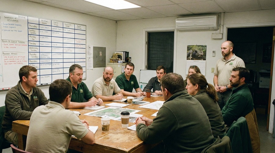 明け方、動物園の会議室に選ばれたスタッフが集まりました。園長が立ち上がって、話し始めました。今夜、極めて稀な遺伝子変異を持つ子キリンが生まれたこと。リューシズムという現象について。そして、その子を守るために全員の協力が必要なこと。情報管理の重要性について。スタッフたちは真剣な表情で聞いていました。園長が最後に言いました。「この子を守ることは、我々の使命だ」会議室が静まり返りました。その時、会議室のドアが開きました。広報部長が息を切らして入ってきました。