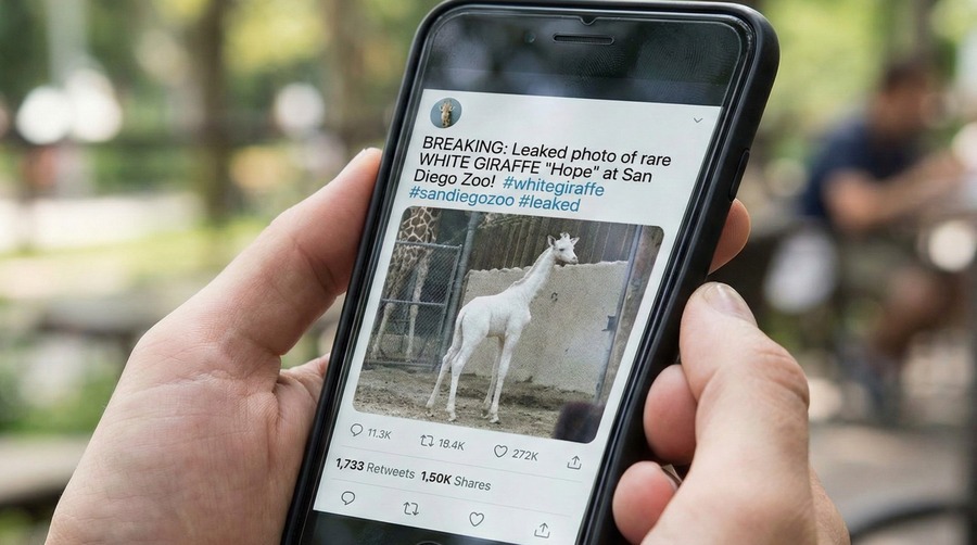 広報部長が息を切らして入ってきました。「大変です!SNSに投稿が出ました」夜勤の清掃スタッフの一人が、ホープの写真を撮影して投稿していました。純白のキリンの写真は、瞬く間に拡散されていきます。数百回、数千回とシェアされていきました。マイクは頭を抱えました。たった数時間で、秘密は世界中に知られてしまいました。園長が決断を下しました。「今日の午後に公式発表を行う」警備主任が立ち上がりました。「その前に、警備体制を整えなければ」時間がありません。