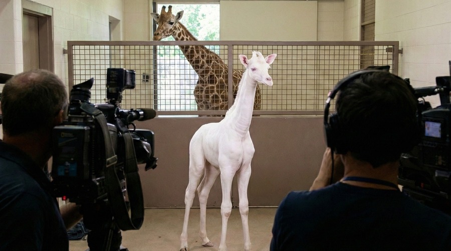 その日の昼、動物園の周りにはすでに報道陣が集まり始めていました。テレビ局のバン、新聞記者、カメラマン。誰もが純白のキリンの写真を撮りたがっています。動物園の電話は鳴り止まず、メールは数え切れないほど届いていました。世界中のニュースサイトが、この出来事を報じています。広報部長は広報室で、記者会見の準備を進めていました。午後2時に会見を開くこと。マイクと獣医が説明を行うこと。広報部長の携帯が鳴りました。警察からでした。緊張が高まります。
