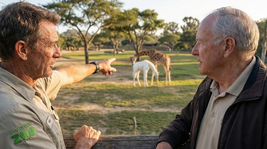 ある日の夕方、園長がマイクのもとを訪れました。二人は放飼場の柵にもたれて、ホープとベラを見つめます。「マイク、君はこの1年で何を学んだ?」園長が尋ねました。マイクは少し考えてから答えました。「命の尊さです。そして、違いを受け入れることの大切さを学びました」園長が頷きます。「ホープは我々に多くのことを教えてくれた。外見が違っても、命の価値は変わらないということをね」「ホープは、本当に希望になりました」マイクが静かに答えました。園長は微笑みました。