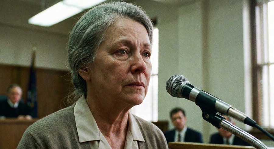 裁判所の木製の傍聴席で、エレンは被告席に座ってキャロルが証人台に立つ様子を見つめました。検察官が「あなたは娘の出産に立ち会ったのか」と尋問すると、キャロルは「この目で見た、間違いない」と頷きましたが、検察官は「それは主観的な証言だ、科学的証拠がそれを否定している」と言います。裁判官が槌を打って「却下です」と告げ、キャロルの証言は採用されませんでした。エレンは母の涙を見ました。母の涙が法廷で無視されます。