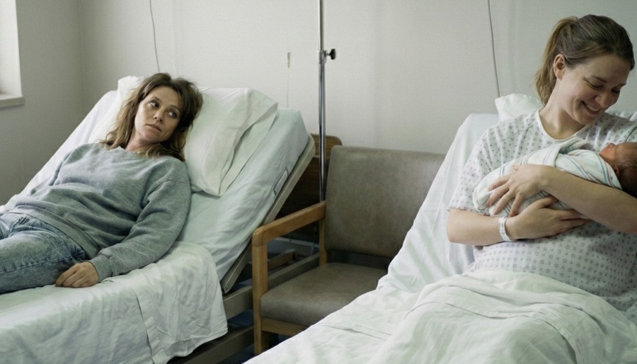 産後の病室で窓際のベッドに横たわっていたエレンは、隣のベッドには若い母親が赤ん坊を抱いている様子を見つめていました。自分の赤ん坊は新生児室に隔離されており、DNA鑑定の結果が出るまで面会は許されていません。エレンは天井を見つめながら、白い天井と蛍光灯の光だけを眺めていました。隣のベッドから笑い声が聞こえ、家族が訪れたのでしょう。エレンには誰も来ません。そして4日後、運命の結果が告げられます。
