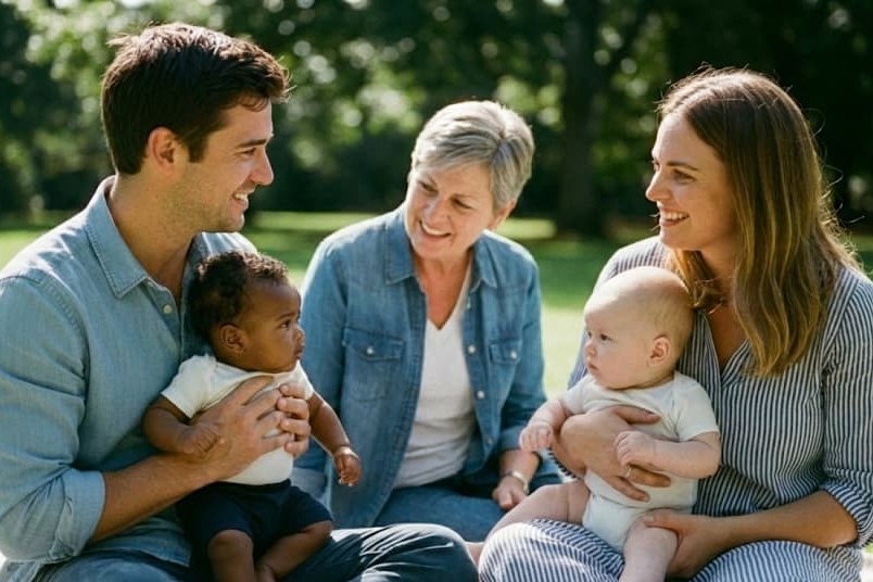 それから半年後。穏やかな光が降り注ぐ公園に幸せそうな家族の姿がありました。ジェームズが抱くのはつやつやとした黒い肌の我が子、隣ではエミリが透けるような白い肌の子どもをあやしています。あの日以来、ジェームズは心を入れ替え誰よりも家族を愛する夫になっていました。さらに驚くべきは義母の変化です。憑き物が落ちたように優しくなり、今では双子の孫を平等に溺愛しています。エミリは愛しい夫と子どもの様子に、嬉しそうに目を細めるのでした。