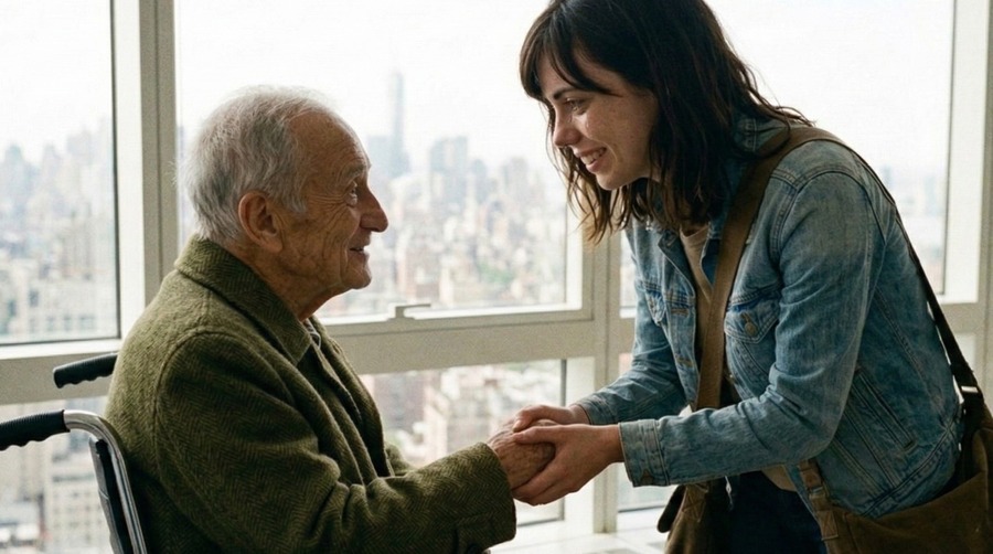 翌日、エミリーはマンハッタンの高級病院を訪ねました。最上階の個室へ案内され、ドアをノックすると中から声が聞こえました。部屋に入ると、窓際の車椅子にチェンが座っていました。エミリーを見て、目を細めます。チェンは手を差し出し、エミリーはその温かい手を握りました。二人はしばらく、言葉もなく手を握り合っていました。窓の外には、マンハッタンの空が広がっています。光が、病室をやわらかく照らしていました。