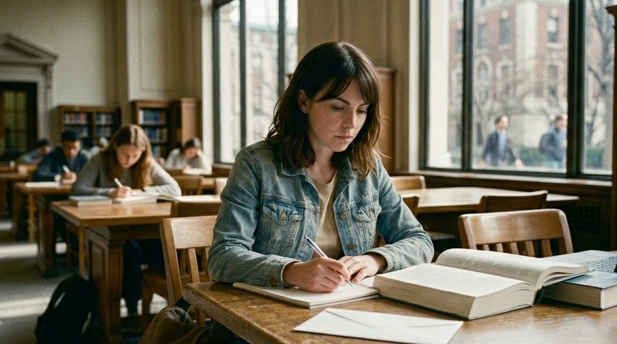 次の日も、その次の日も、エミリーの日々は変わりません。朝は大学へ向かい、昼は図書館で勉強し、夕方からカフェでバイトに入り、夜はアパートでレポートを書く。友人と会う時間も、ほとんどありませんでした。奨学金だけでは学費が足りず、稼がなければならないのです。ストリートフードの屋台で買う4ドルの夕食が、この時期の唯一の楽しみでした。あの階段のことも、老人のことも、封筒のことも、忙しさの底に沈んでいきました。