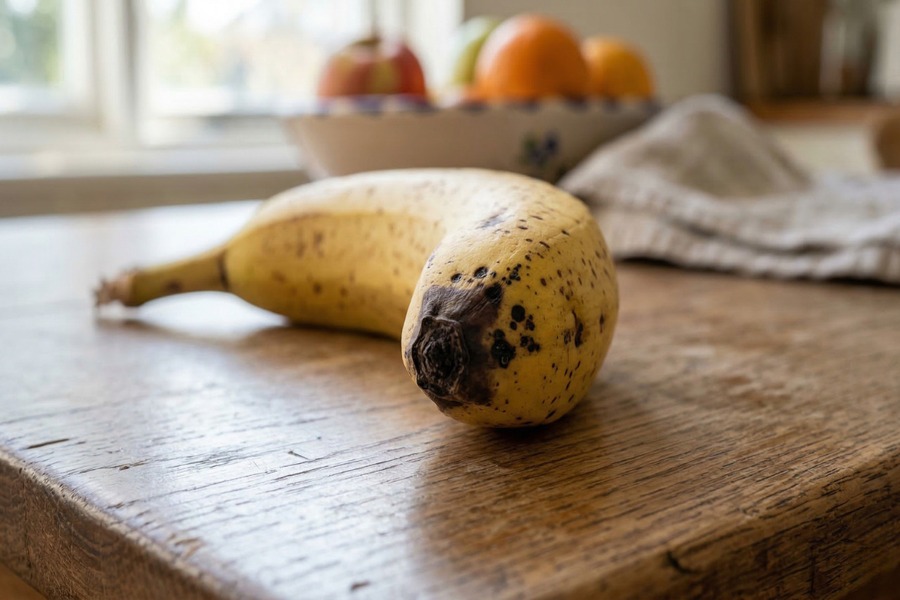 バナナの皮の黒い点「シュガースポット」は完熟の証で、むしろ食べ頃のサインです。しかし先端に黒ずみがあり、皮をむいた中身まで黒や赤に変色していたら要注意。これは熟成ではなく「ニグロスポラ菌」などのカビが内部に感染しているサインです。このカビ毒は熱に強く、加熱しても毒素は消えません。アレルギー体質の方が摂取すると腹痛や蕁麻疹を引き起こす恐れもあります。皮をむいたら必ず中身を確認し、黒や赤に変色している場合は処分してください。実は、私たちが「大丈夫」と思って食べている食品には、まだまだ意外な危険サインが潜んでいます。