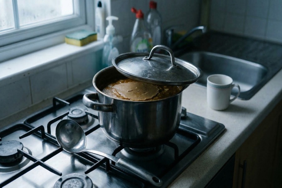 「カレーは翌日の方が美味しい」と言われますが、鍋ごと常温で放置するのは危険です。カレーのようなとろみのある料理では、ウェルシュ菌が増殖しやすく、特に鍋の底で増えやすい特徴があります。この菌は「芽胞」という熱に強い状態で生き残るため、再加熱してもリスクを完全には取り除けません。残ったカレーは粗熱を取ってすぐ小分けし、冷蔵または冷凍で保存しましょう。
