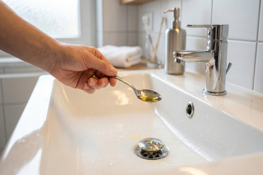 排水口対策にはさまざまな方法がありますが、洗面台などの小さな排水口には、サラダ油を数滴垂らしておく方法もあります。油が水面に薄い膜を作ることで、水の蒸発を抑える効果が期待できます。これにより、下水からの臭いや虫の侵入を防ぎやすくなります。使用する際は少量にとどめ、大量に流さないよう注意しましょう。