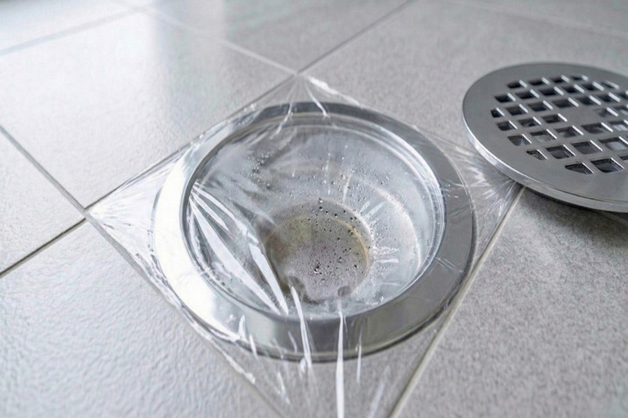 2.お風呂の排水溝に「ラップでフタ」をする