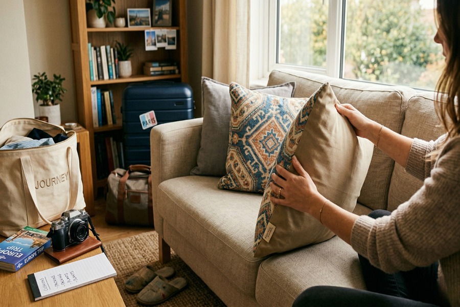 クッションや枕は、布団と違い旅行中も湿気を含んだまま放置されがちです。出発前に裏返しにしておくだけで通気面が変わり、ダニやカビの繁殖を抑制する効果があります。特に汗をよく吸う枕は、カバーを外した状態で裏返しにしておくと効果的です。旅の疲れを癒やすために帰宅後すぐ横になったとき、不快なニオイや蒸れを感じずに済む環境をあらかじめ整えておくことができます。